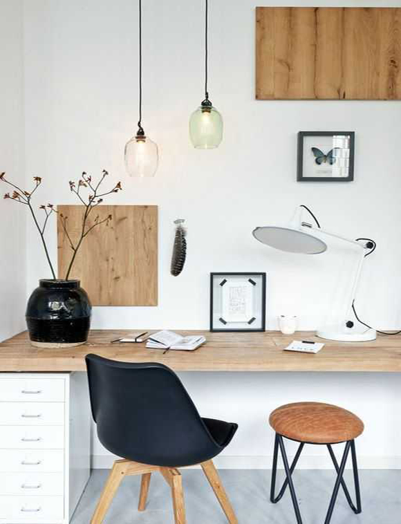 北歐風工作臺:清新的淺色原木系桌子搭配可心的綠植,簡單舒適,在這樣的環(huán)境中工作,整個心情都明朗起來。