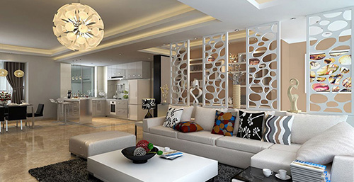 很多人習(xí)慣在客廳和餐廳之間使用屏風之類的裝飾物進行隔斷,其實用隔斷柜代替屏風進行隔斷,可以大大增加收納空間。例如上圖的客廳隔斷柜,最上面和中間是開放式的,不影響光線傳遞,還可以擺放部分裝飾品,既美觀又實用。
