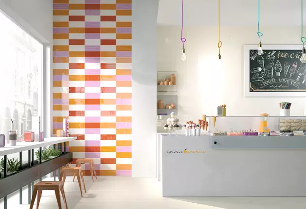 磚與墻的拼接豐富墻面層次感顯得張弛有度面包磚也在彩色墻面的襯托下更具時尚與青春的氣息
