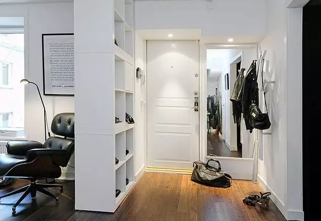 小戶型、一居室,床和門口離得近,不如在玄關(guān)處安裝一個(gè)大型置物架,不僅收納出門衣物,還能履行房間里的其他收納任務(wù)。只要你不擺的太滿,就不會影響采光。