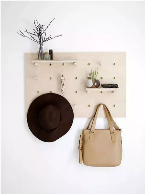 ▲有實(shí)際收納功能的洞洞板就十分適合放在玄關(guān)處,與隔板結(jié)合,兼顧裝飾與收納。
