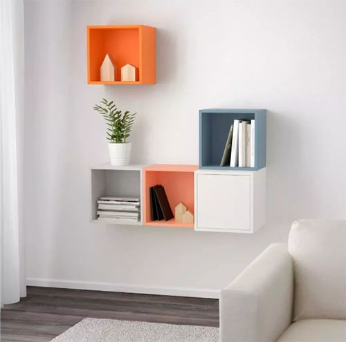 ▲這類(lèi)裝飾適合沙發(fā)背景墻與沙發(fā)有一定距離的客廳,將隔板噴繪出自己想要的顏色,并加以搭配組裝。上面擺放的物件也是有講究的,屋主人的興趣、品位在這里都能盡數(shù)展出。