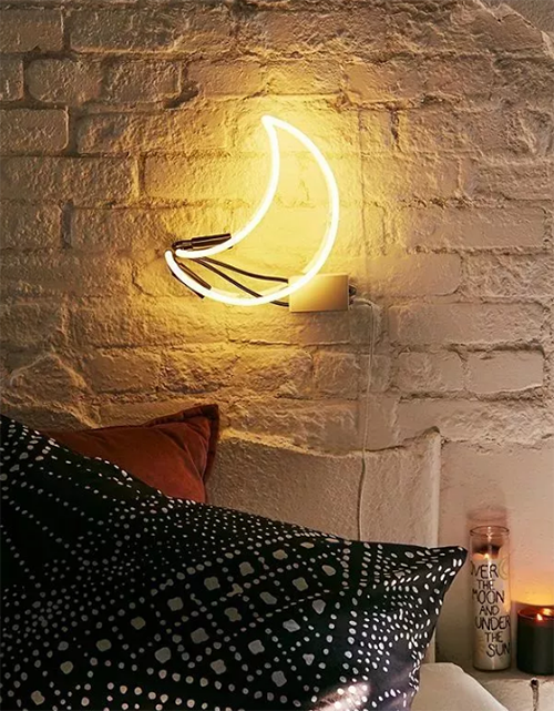 如果你對(duì)霓虹燈的印象還停留在酒吧和商業(yè)街,那端端可真是要?dú)獾椒籽哿?。造型多變的霓虹燈不僅能做臥室空間的氛圍照明,還能替代裝飾畫(huà)做床頭區(qū)的主要裝飾。