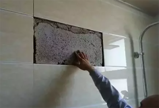 墻基鋪貼前沒有充分濕潤,造成水泥砂漿和磚體里的水被吸走,砂漿在凝固時(shí)間內(nèi)沒有足夠的濕度,無法充分粘結(jié)瓷磚。