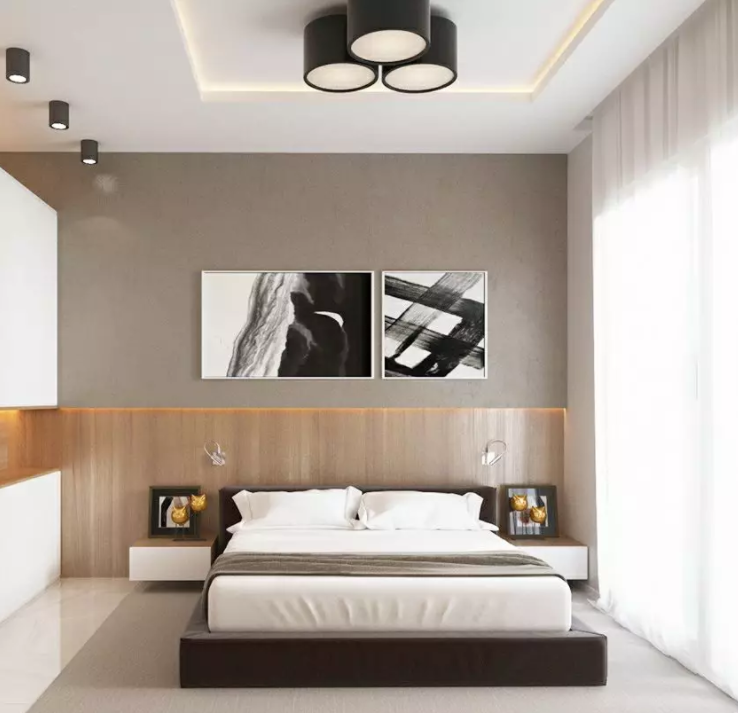 臥室如果高度不夠,不建議設(shè)計(jì)吊頂,因?yàn)闀o人一種累贅感,但是如果高度適宜,可以打造一個比較簡易的吊頂,這就要求吊頂每個設(shè)計(jì)面板的接縫一定要嚴(yán)密。