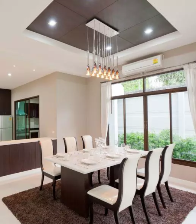 在選擇餐廳吊頂?shù)臅r(shí)候,建議選擇十分容易清潔的扣板材料。餐廳是我們進(jìn)餐的地方,久而久之餐廳吊頂上會沾一些水蒸氣和油污,時(shí)間長了會滋生細(xì)菌,所以這里的吊頂易清潔很重要。