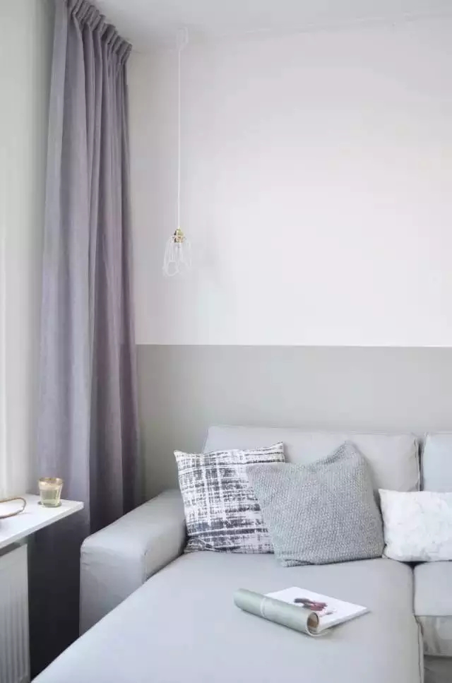 ▲將墻壁的下半部漆上較深的顏色,上半部的墻則和天花板同色,同樣以延伸感制造錯(cuò)覺(jué)。