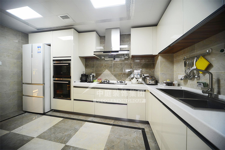 ▲在廚房裝修的時(shí)候最好選擇一些好拆卸好清洗的頂板,中國(guó)人做菜最喜歡的就是煎炒烹炸,整體煙熏火燎,就算有抽油煙機(jī),等時(shí)間長(zhǎng)了,也會(huì)給頂面沾上一些油污,這樣也不用擔(dān)心臟亂差的問(wèn)題。