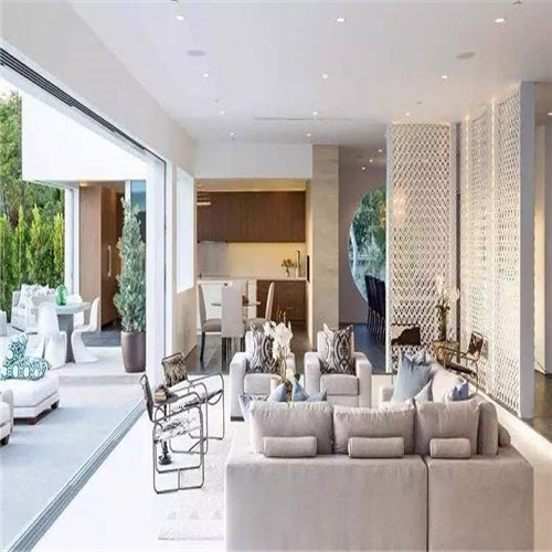 1、長條形的客廳在與餐廳等隔斷時,應(yīng)避免采用硬隔斷,因?yàn)楸緛砜臻g就小,硬隔斷會使客廳看起來像個箱子一樣,給人壓抑感,而且也有可能影響采光。開放式的客廳餐廳可能效果會更好一些,不管是休閑還是吃飯,都不會覺得擁擠。對于不喜歡開放式的朋友來說,可以使用軟隔斷,比如用一個簾子或者鏤空的屏風(fēng)等,效果都會非常不錯。但是隔斷物的顏色不易太過厚重,以簡潔輕快為好。