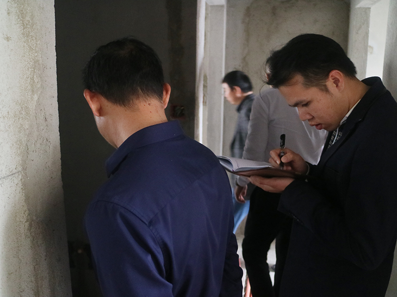 集團(tuán)工程質(zhì)量管理中心吳總表示:為了對業(yè)主的家有保障,保證施工工地正常進(jìn)行,哪怕是一個(gè)入戶門保護(hù)的門貼,我們都要仔細(xì)認(rèn)真的做。