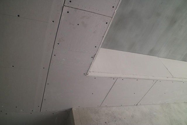 【木工施工工藝】邊吊轉(zhuǎn)彎處底板采用“L”形鏈接,使吊頂整體更加美觀,防止后期開(kāi)裂。