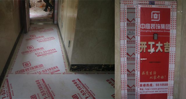 施工前電梯口過(guò)道保護(hù)及入戶(hù)門(mén)保護(hù),目的是為了保護(hù)公共區(qū)域里的公共設(shè)施,能有效避免裝修過(guò)程中由于意外所造成不必要的困擾和糾紛。