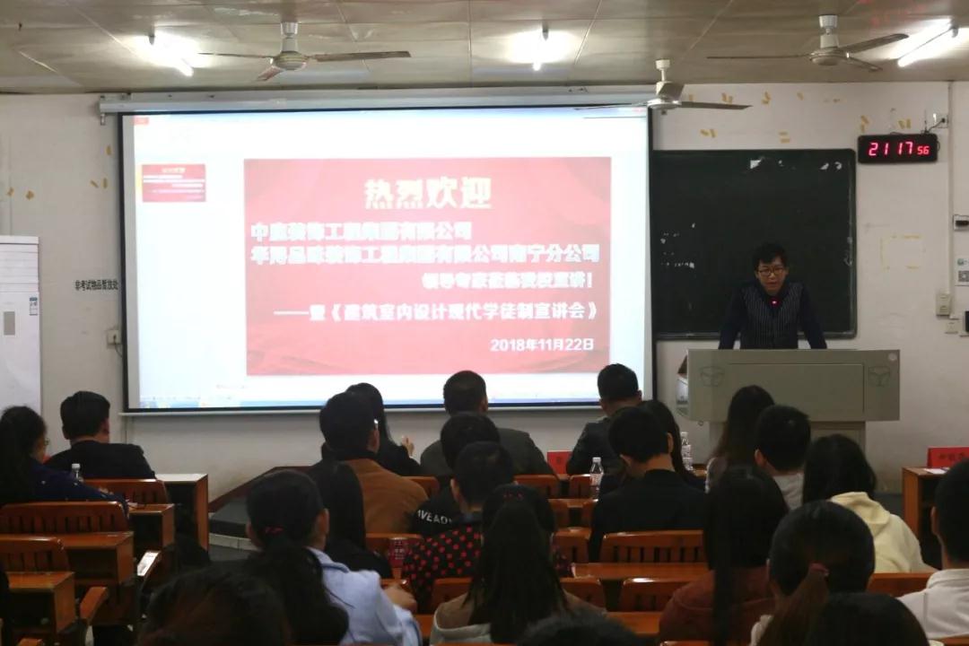 在前期的籌備活動中,已邀請過廣西農(nóng)業(yè)職業(yè)技術學院老師和學生來中庭裝飾集團進行過參觀與交流,彼此都留下非常好的印象,2018年11月22日,我公司張立安張總帶領營銷三部蘇家毅蘇經(jīng)理和人力資源部黃紅娟黃主管等人去到學院進行宣講,讓老師和學生們更加了解中庭裝飾集團,讓他們明白,選擇我們,是正確的。