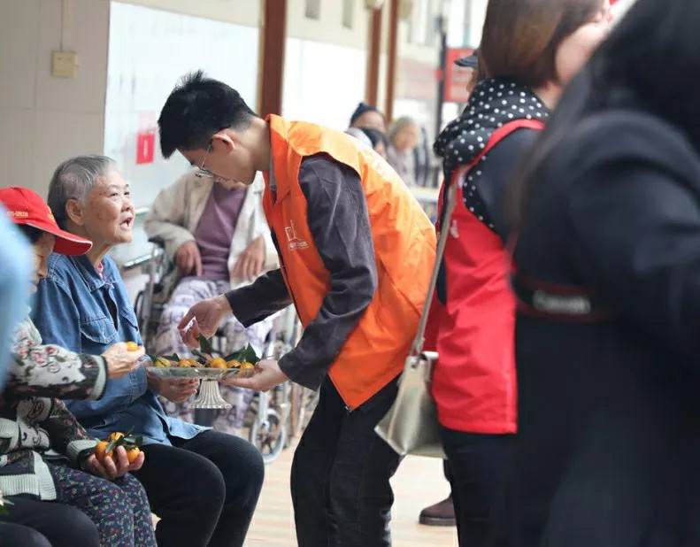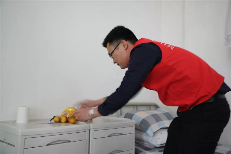 集團(tuán)家人們帶著水果走訪宿舍,邀請老人們來參加活動(dòng);同時(shí)也給行動(dòng)不便不能下樓的老人送去水果,關(guān)懷老人。