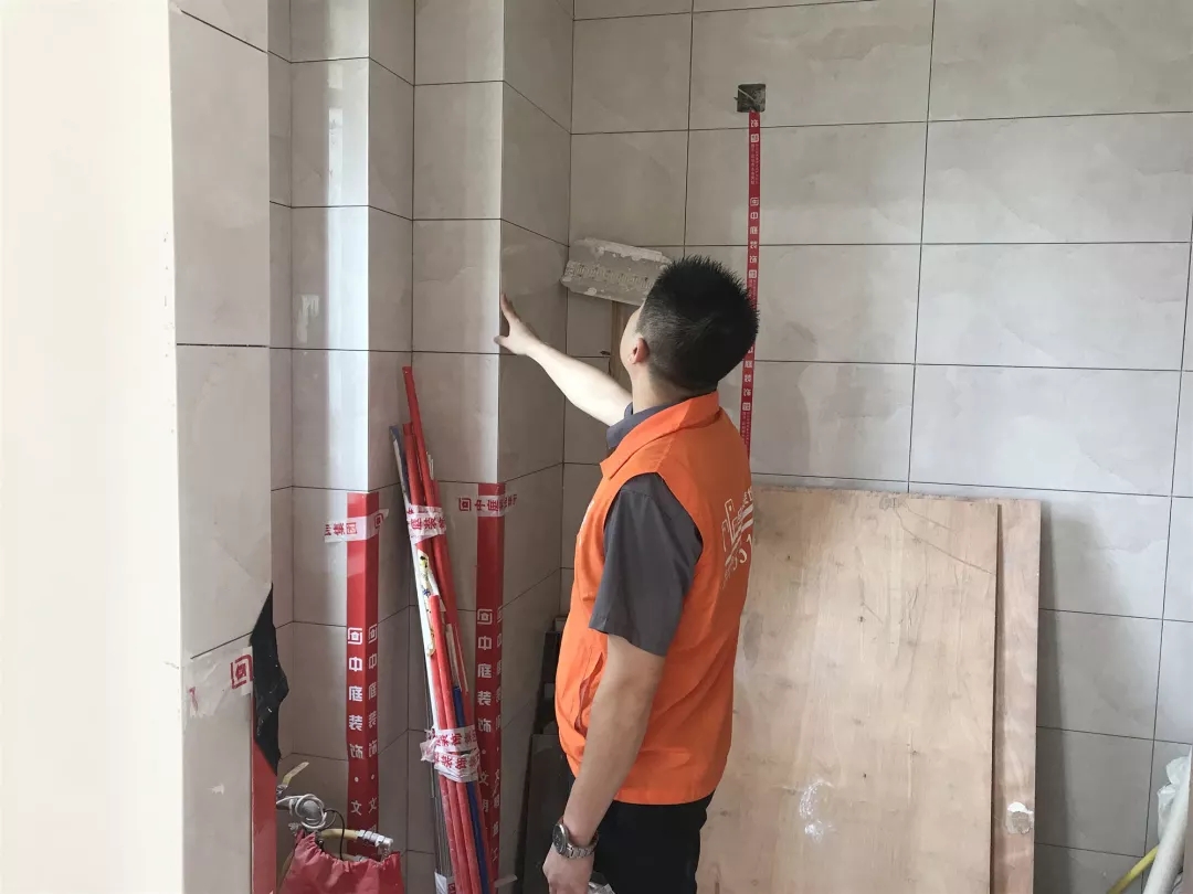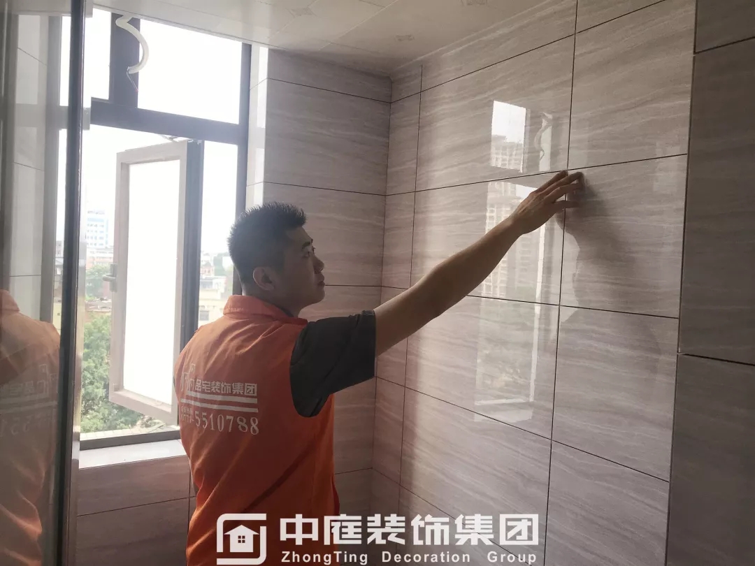 檢查瓷磚鋪貼的平整度是否達(dá)到集團(tuán)施工標(biāo)準(zhǔn)
