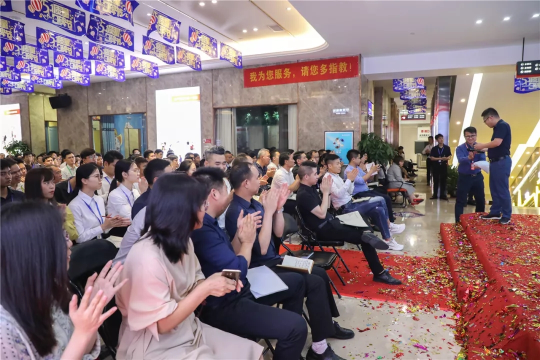 啟動(dòng)會(huì)最后,集團(tuán)總裁丁胡、副總裁張浩熙、副總裁湯炬峰、總裁助理黃志輝、工程質(zhì)量管理中心總經(jīng)理吳文戰(zhàn)一同按下優(yōu)質(zhì)服務(wù)月活動(dòng)啟動(dòng)鍵,宣布活動(dòng)正式啟動(dòng)。