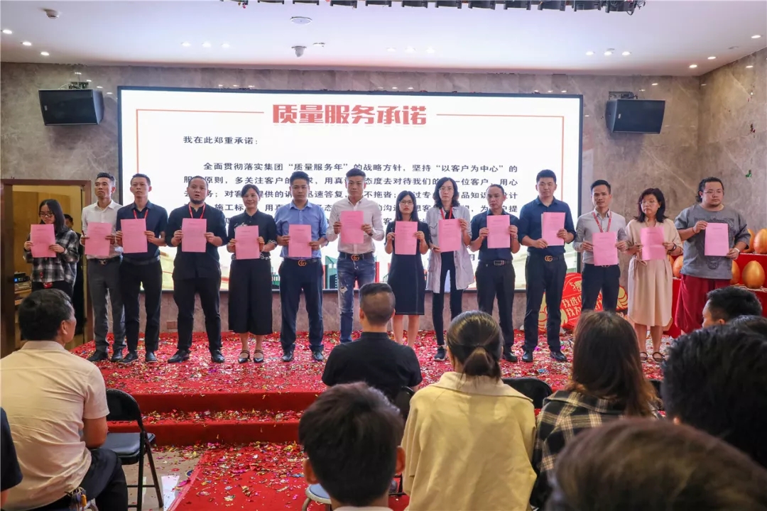 以客戶為中心,為貫徹集團(tuán)“質(zhì)量服務(wù)年”方針,持續(xù)提升工地質(zhì)量,加強(qiáng)各部門(mén)服務(wù)意識(shí),打造服務(wù)品牌,為客戶提供更專業(yè)、優(yōu)質(zhì)、熱情周到的服務(wù)。集團(tuán)在5月份隆重開(kāi)展優(yōu)質(zhì)服務(wù)月活動(dòng),并于5月5日晚上在集團(tuán)總部舉行活動(dòng)啟動(dòng)儀式。
