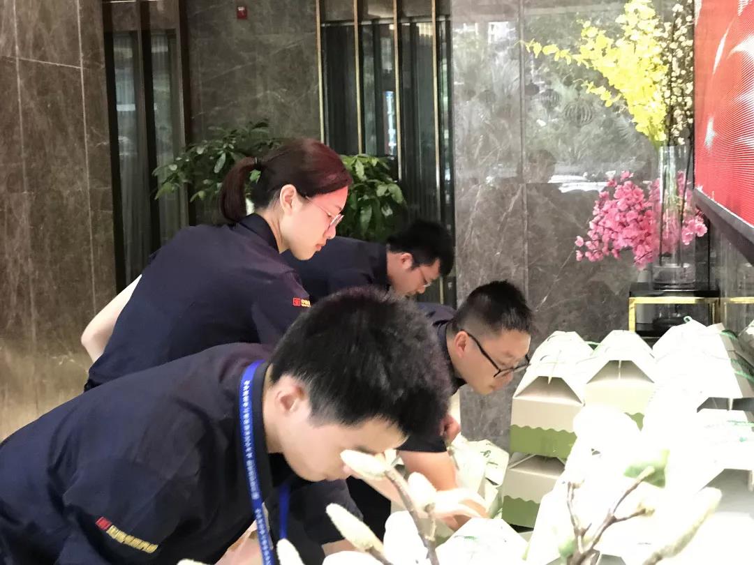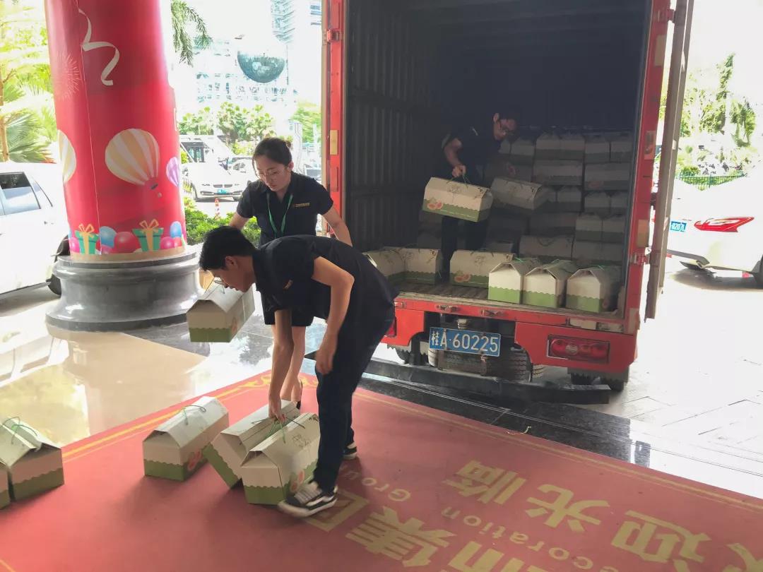 中午時(shí)候幕后工作的家人就已經(jīng)中秋禮盒擺放在一樓大廳。