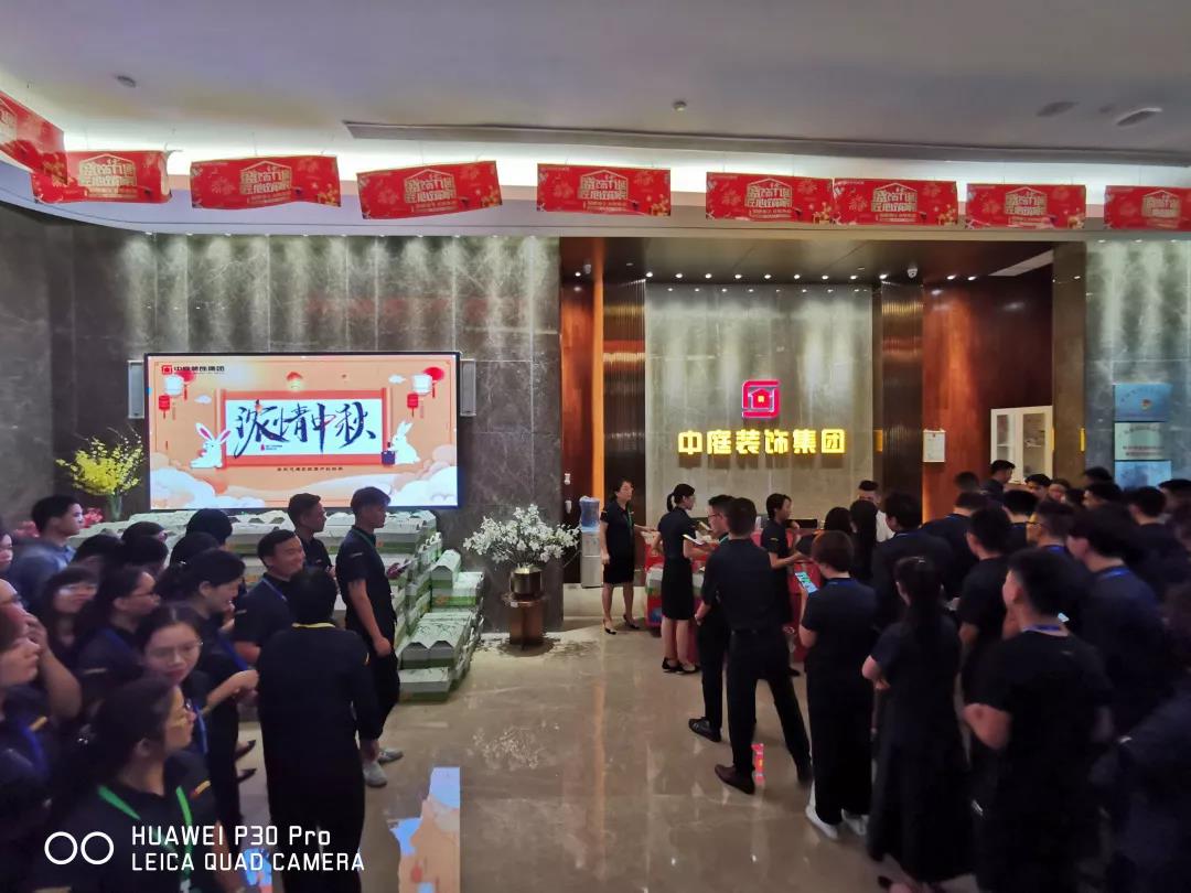 在這個(gè)團(tuán)圓佳節(jié)來臨之際,中庭裝飾集團(tuán)于9月9日這個(gè)長久的日子,向全體家人發(fā)放中秋禮盒,給家人們送上最誠摯的祝福。