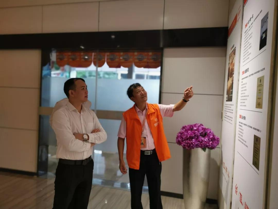 ▲大區(qū)經(jīng)理應立強應總向吳總一行人解讀公司文化墻