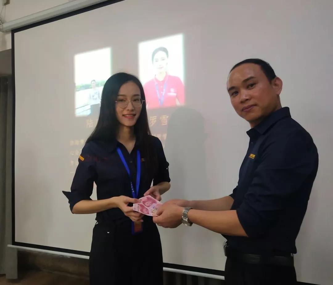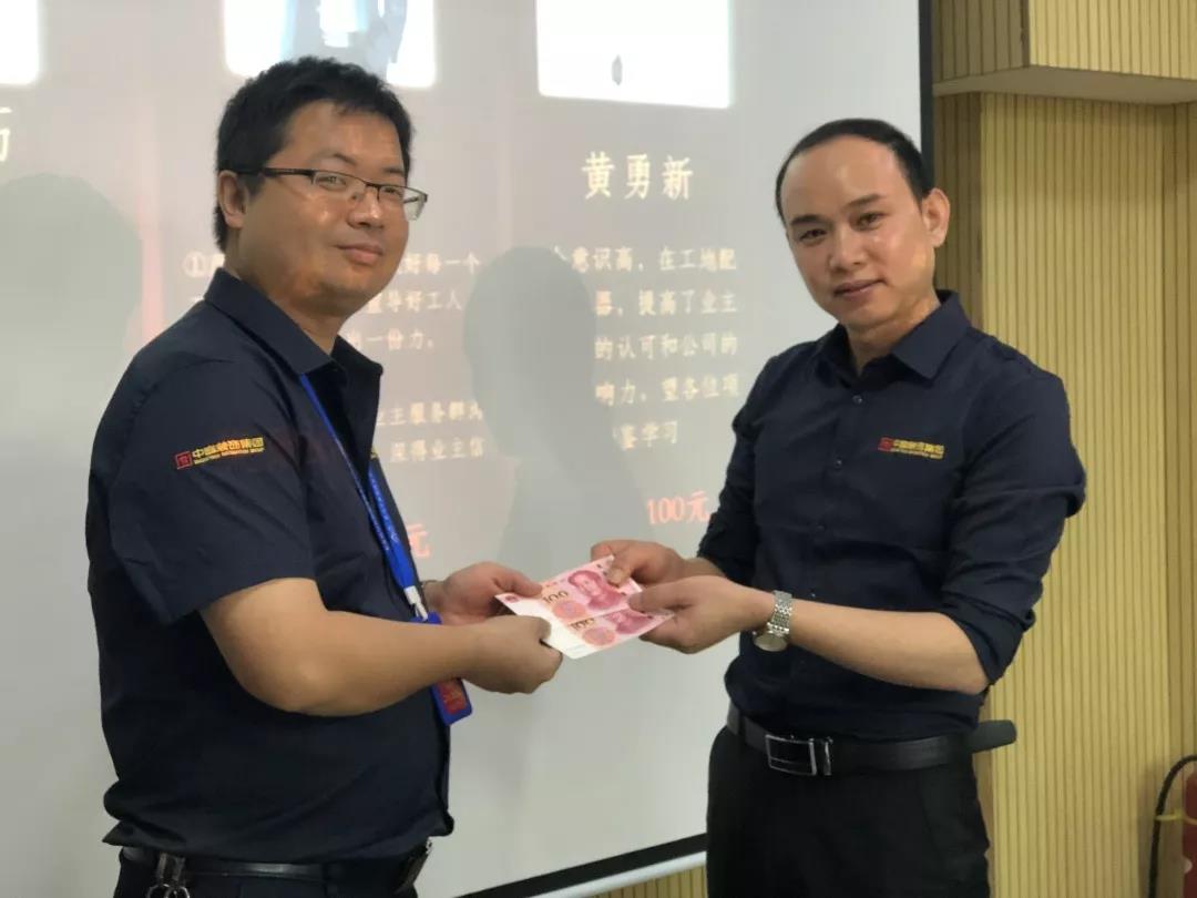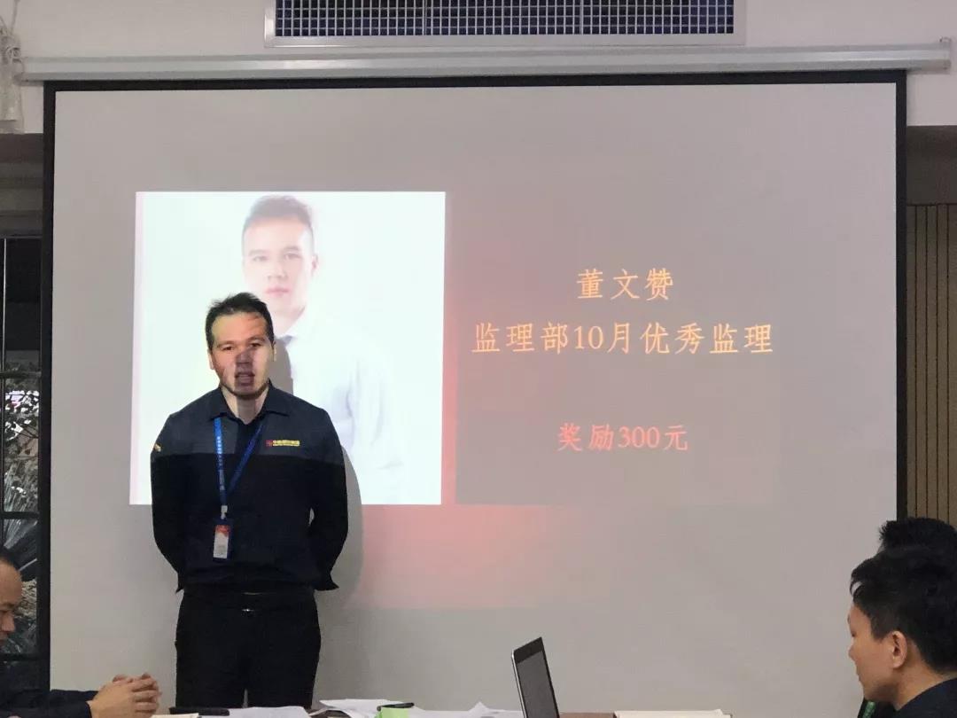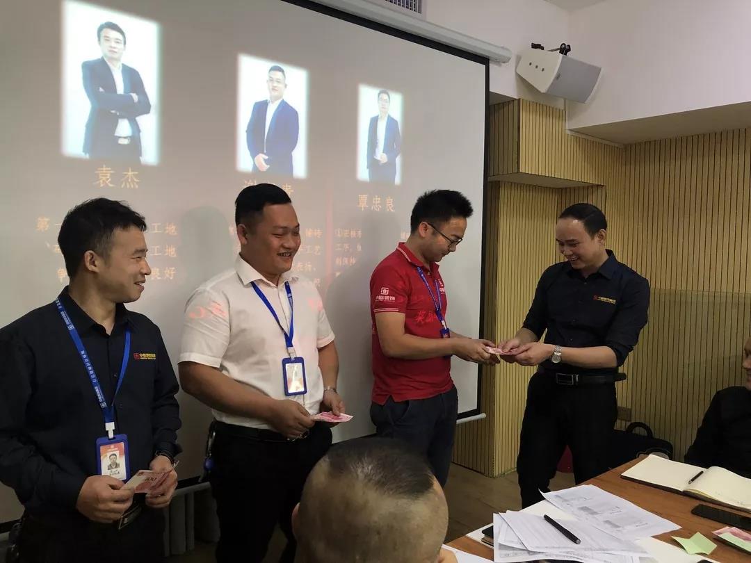 工程質(zhì)量管理中心總經(jīng)理吳文戰(zhàn)給10月表現(xiàn)優(yōu)秀的家人頒發(fā)獎(jiǎng)勵(lì):