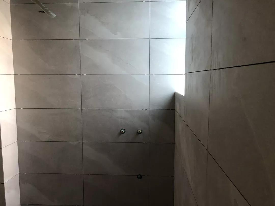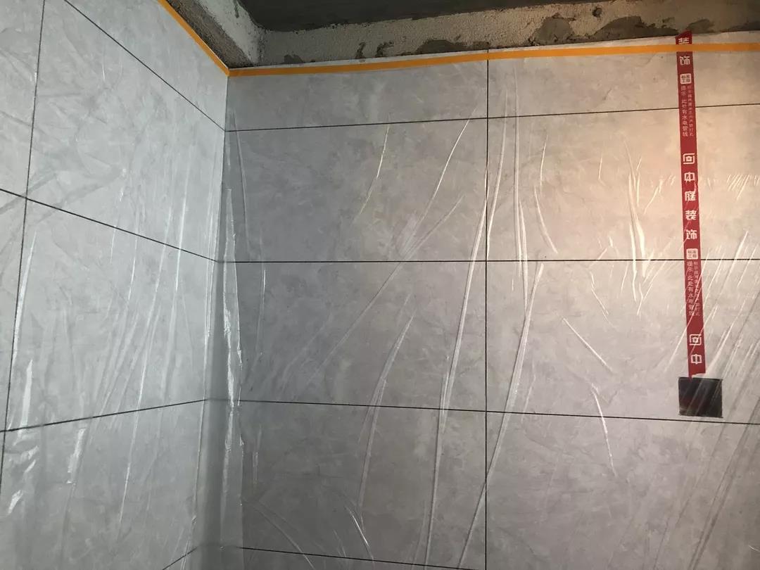 ▲每個(gè)區(qū)域鋪貼完畢后必須用薄膜封閉,并關(guān)閉貼磚區(qū)域的門窗,防止風(fēng)干過快。