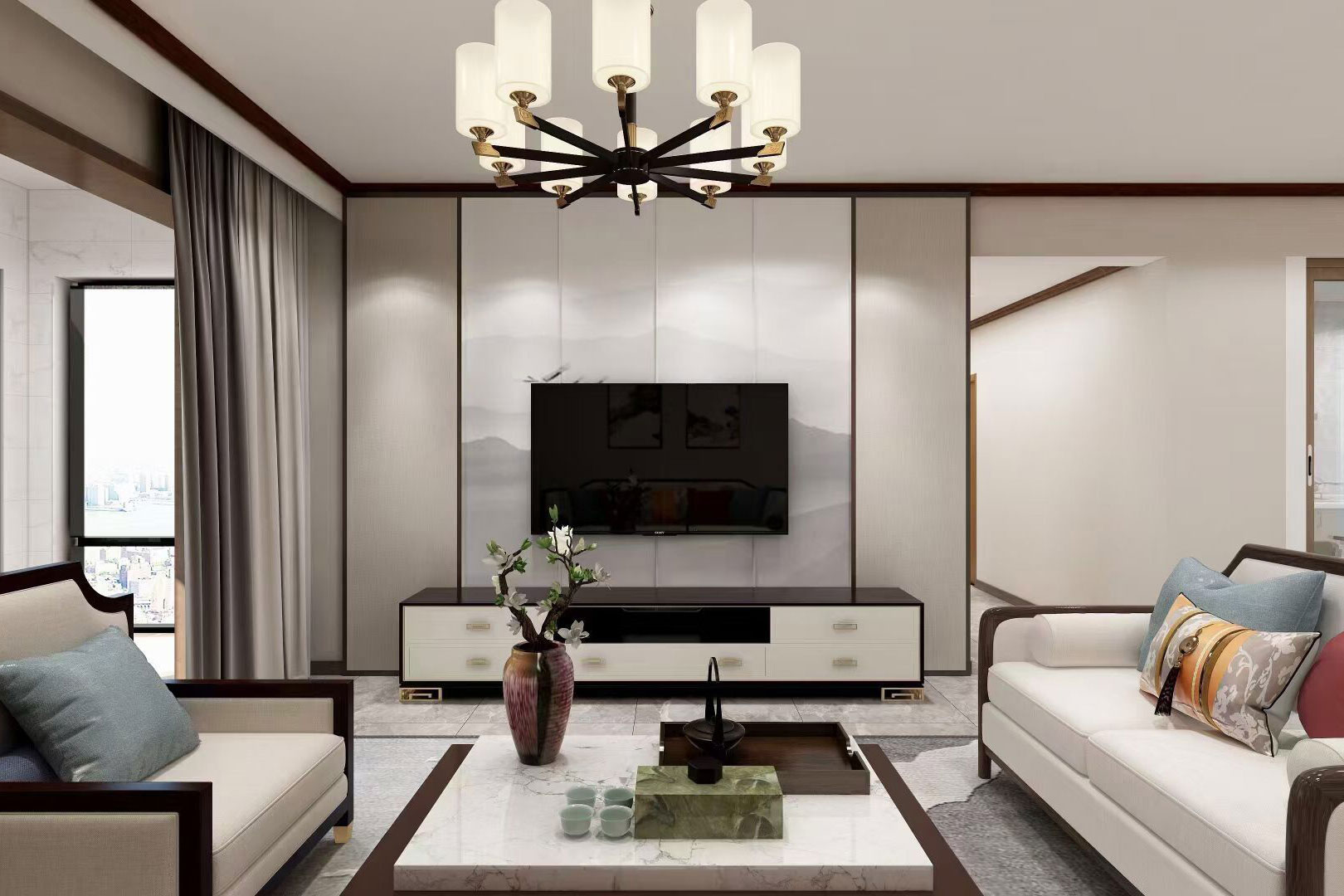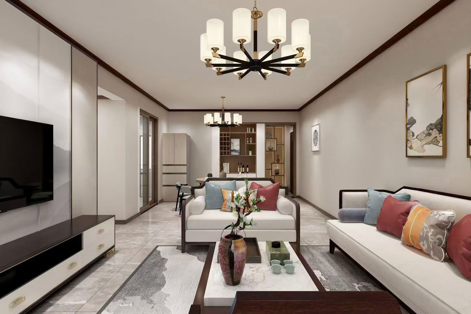 瀏覽量:564本案例總面積為148㎡,整體屬于新中式風(fēng)格,室內(nèi)空間講究主次分明、追求合理的空間布局和家具擺設(shè)。同時非常強(qiáng)調(diào)融入自然,并且注重人與空間的關(guān)系。提取傳統(tǒng)家居的精華元素和生活符號進(jìn)行合理的搭配、布局,使整體的家居設(shè)計中既有中式家居的傳統(tǒng)韻味,又能夠讓傳統(tǒng)元素更具筒練、大氣、時尚的特點。