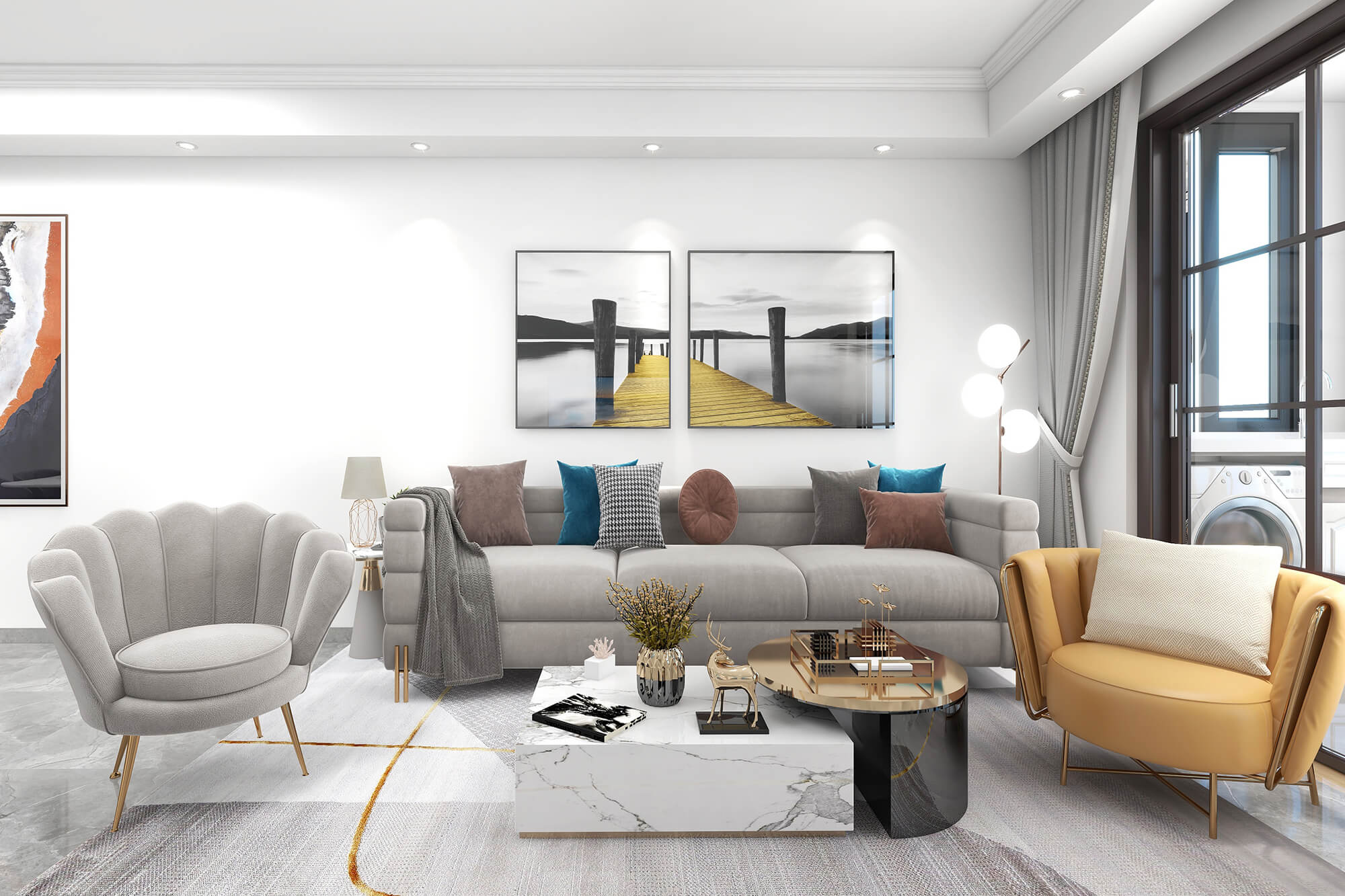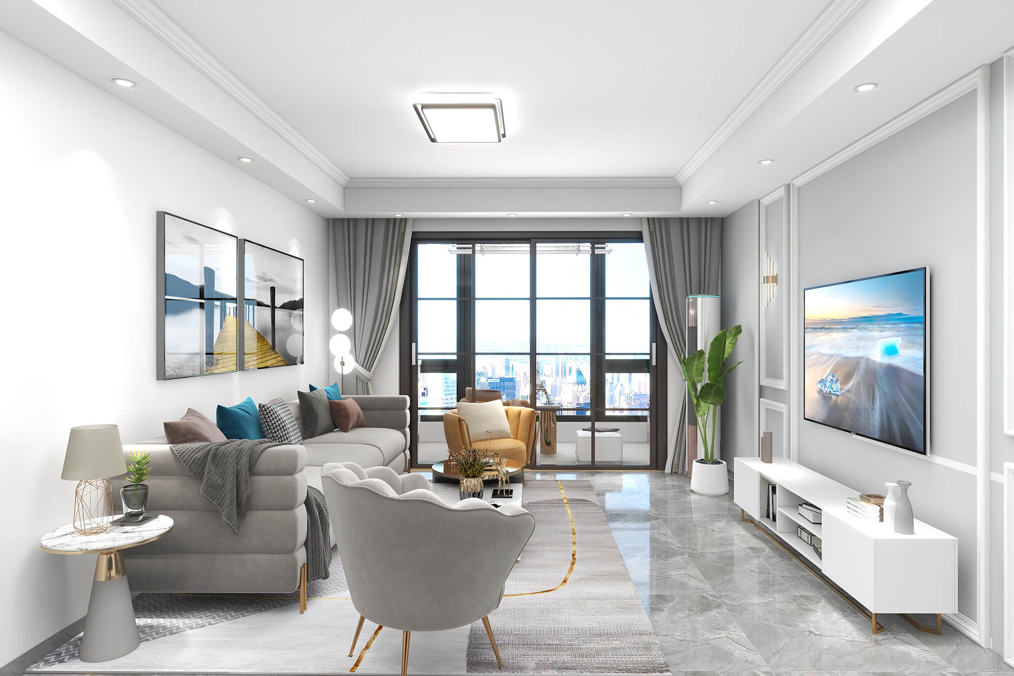 本戶型為:4房2廳1衛(wèi),總面積136㎡。設計師選用米灰色作為整體主色調,整體簡潔大氣,然后用現(xiàn)代簡約家居點綴整個空間,讓空間沉穩(wěn)、寧靜又不乏時尚感。