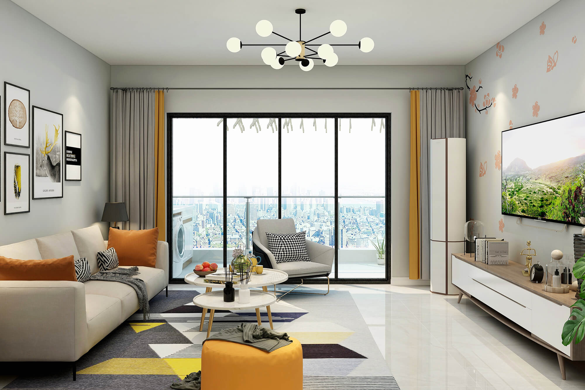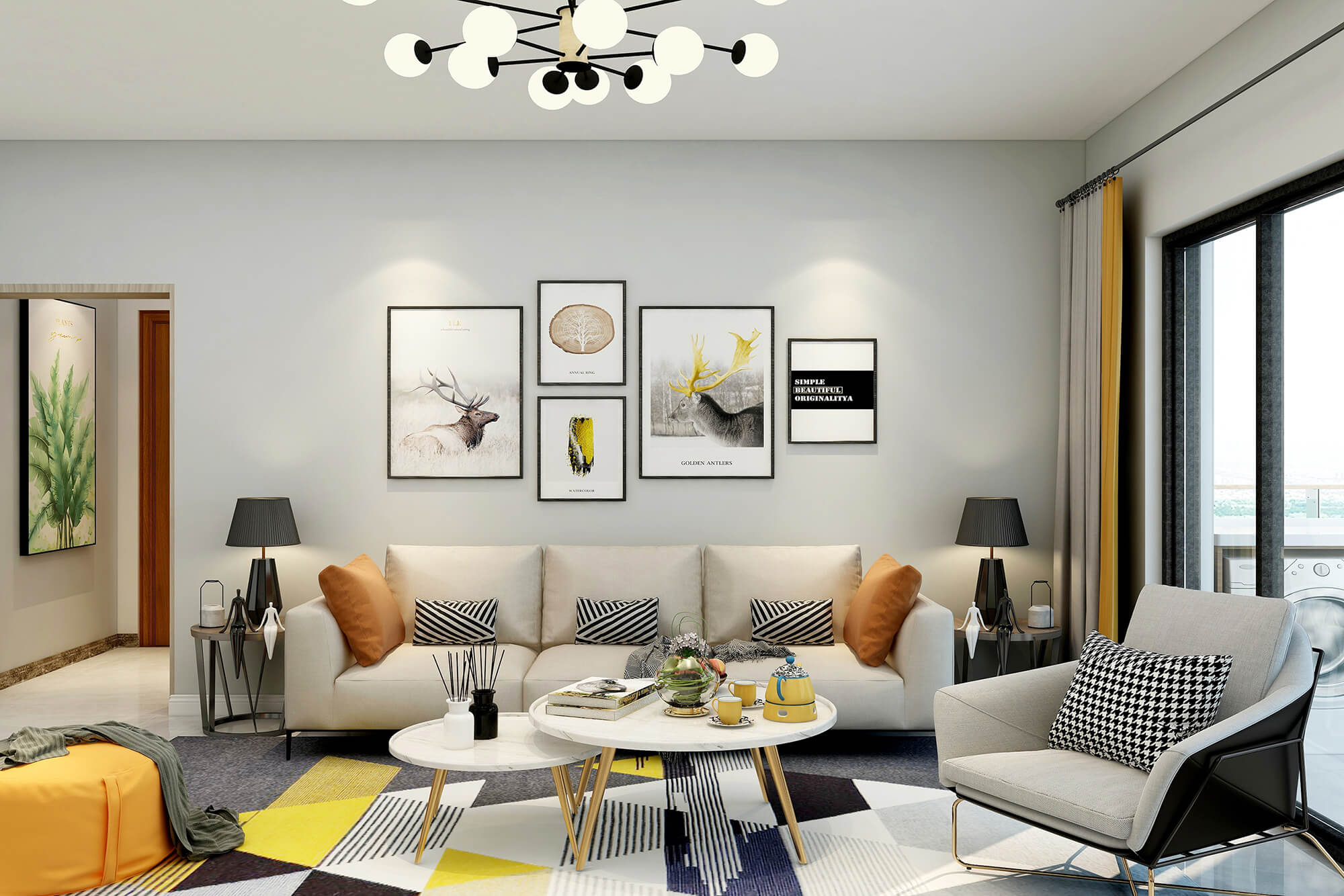 瀏覽量:432白色與米白色的搭配看起來干凈又溫柔,加上地毯里一抹明黃的顏色與沙發(fā)的橙色抱枕和橙色圓凳的跳色讓溫柔的搭配里又多了絲活潑,加上綠植點綴更好的融合了整體空間的色彩搭配。
