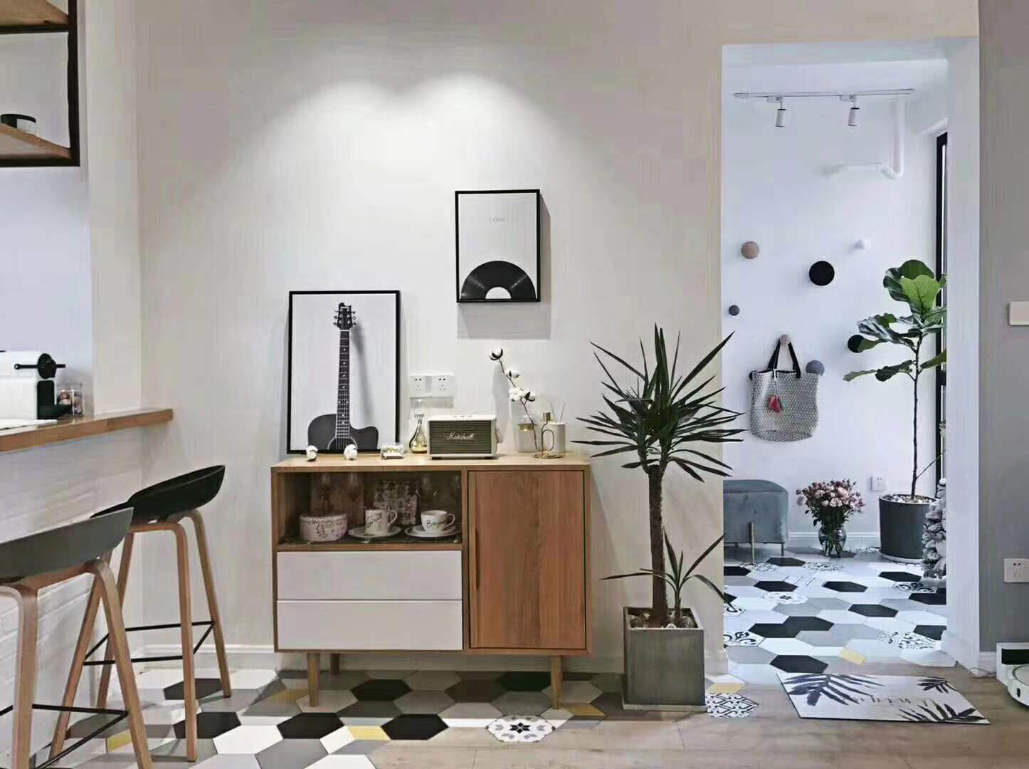 本案總面積135㎡,屬于北歐風格,本案設計簡約、自然、人性化,保留最大的限度的人文關懷與自然氣息,白色為主色調(diào),頂燈和背景掛畫的裝飾,勾勒出空間設計的簡潔清新的氣氛。