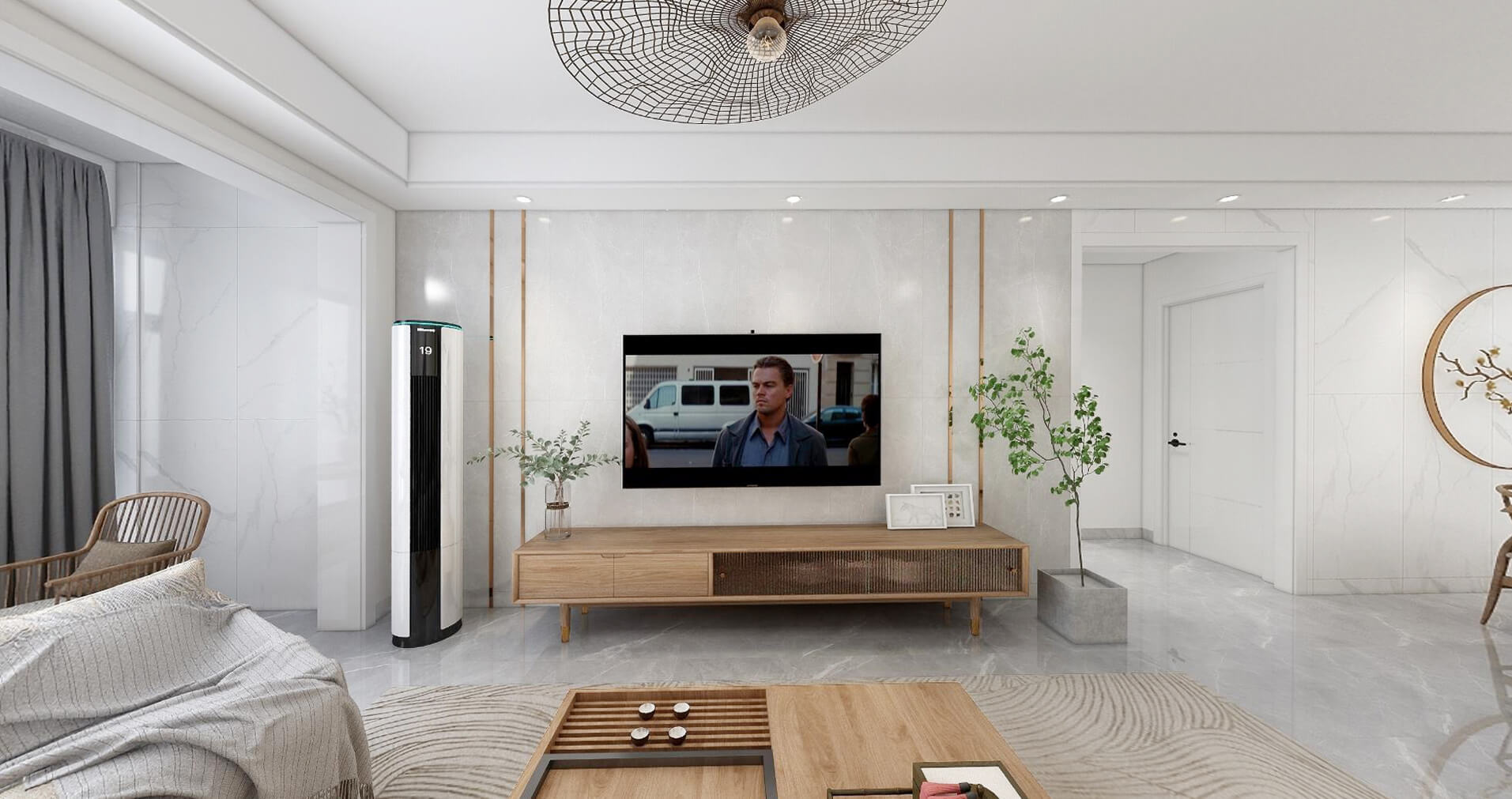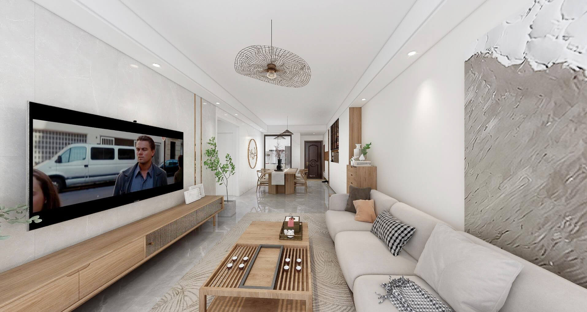 本案戶型為:3房2廳1衛(wèi),總面積85㎡。本案以考究的線面比例,結合自然色系材質,營造放松愜意的品質生活氛圍。