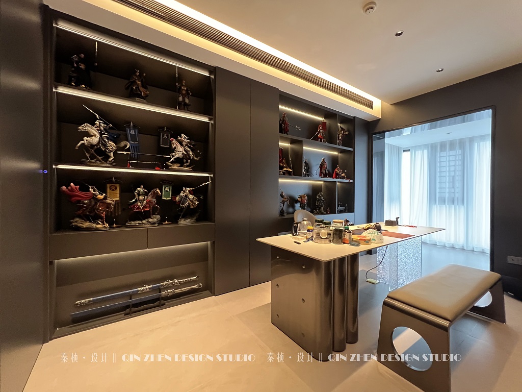 瀏覽量:742戶型改造: ◆原戶型的5房直接改成2房,入戶封閉廚房拆除; ◆將原有的老人房拆除做成半開放式書房+茶室; ◆把次臥做隱藏門隱秘空間、打通陽臺; ◆原有的封閉式廚房做成開放式廚房; ◆靠近主臥的次臥打通,做成衣帽間;