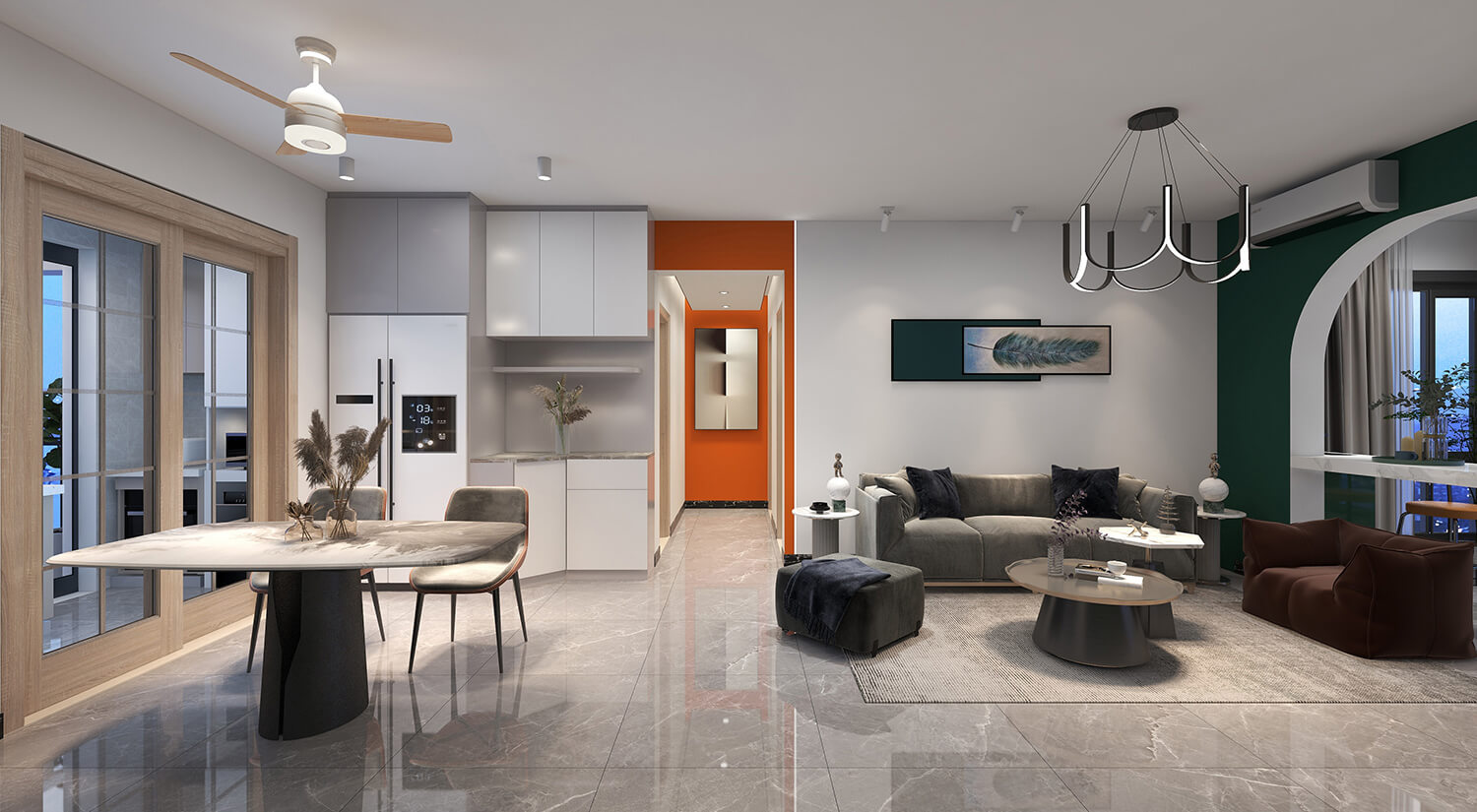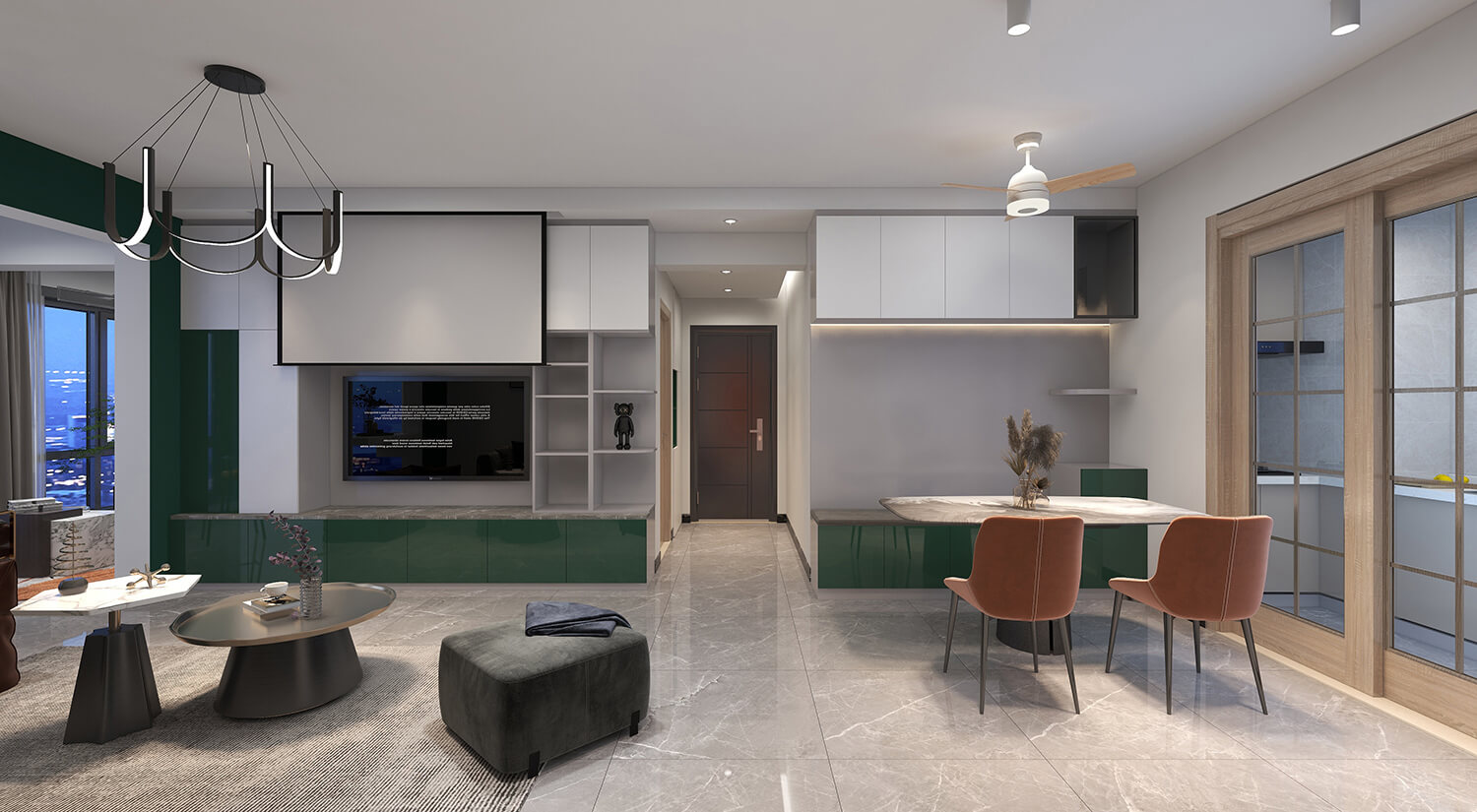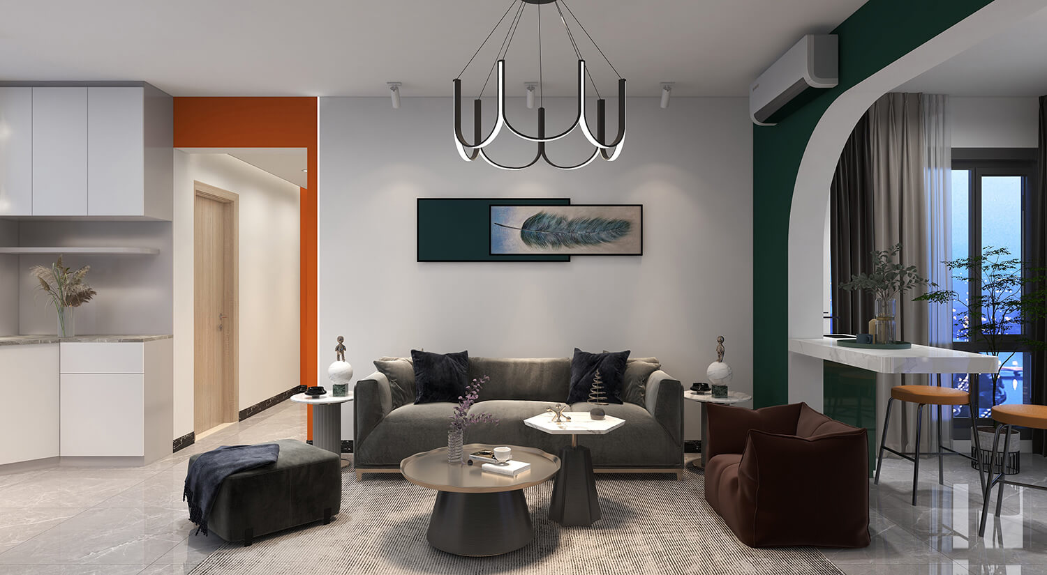 瀏覽量:227本案例戶型為:3房1廳1衛(wèi),總面積125㎡。這是一套輕奢風格的房子。設(shè)計師采用開放式布局,將客廳、餐廳融為一體。這樣不僅增加了家庭成員的互動和交流,也可以讓房間看起來更加寬敞。輕奢金屬飾品與布藝沙發(fā)的結(jié)合,使得畫面具有時尚感又不乏溫馨。