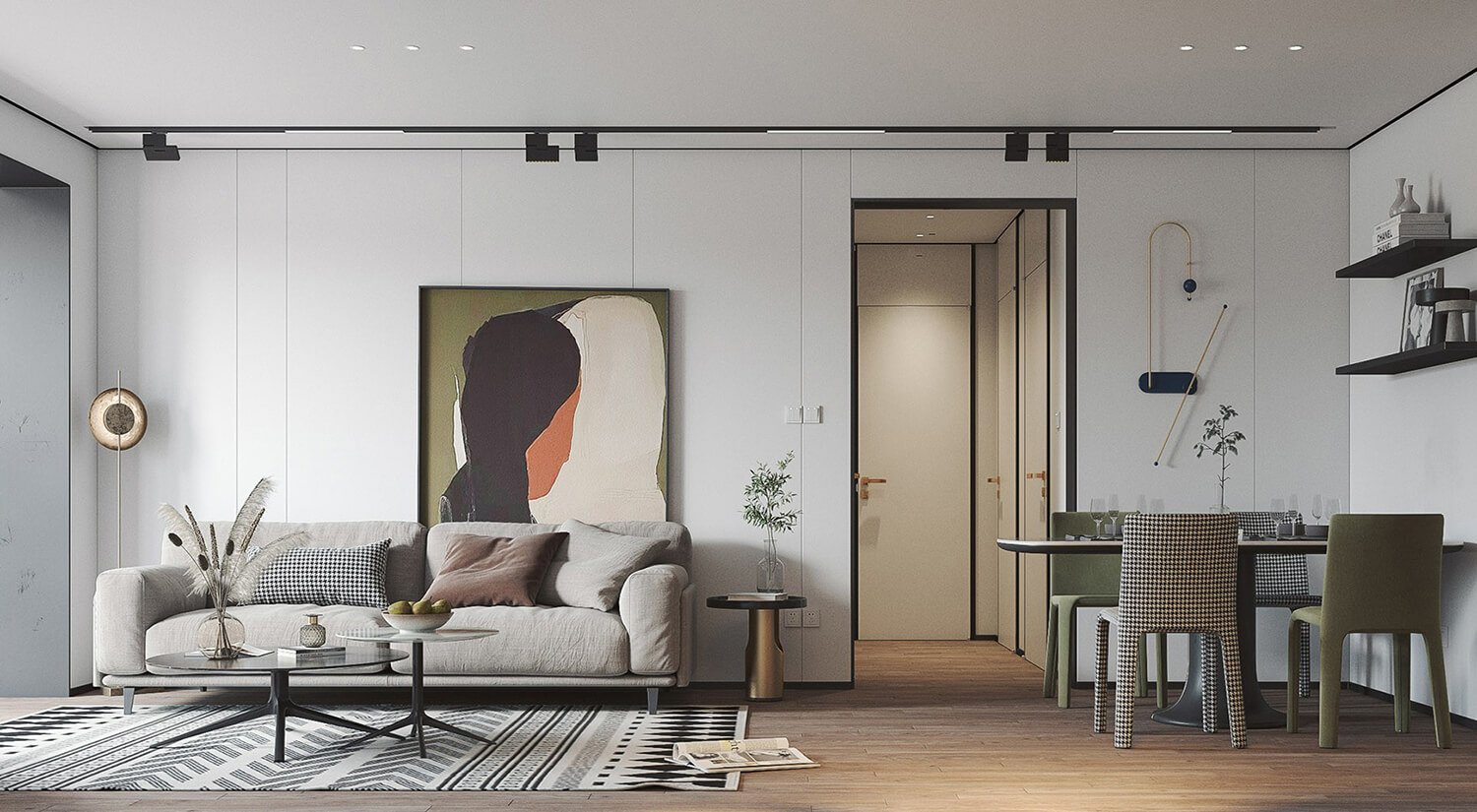 這是一對年輕夫婦的98㎡住宅,以簡潔手法打造自然、質(zhì)樸典雅的空間,既藝術(shù)又有格調(diào)并帶有明顯的設計氣質(zhì)。