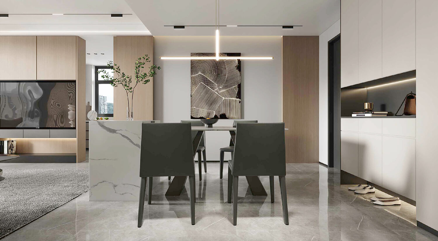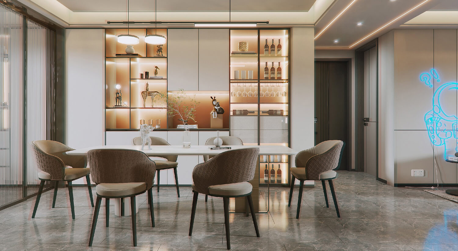 瀏覽量:523在現(xiàn)代輕奢風(fēng)格的裝修中,還需要考慮空間布局和功能性的結(jié)合。一般會(huì)將客廳、餐廳打通,形成開(kāi)放式的空間,增加通透性和流動(dòng)感。暖色線燈烘托家的溫馨氛圍,享受與家人一起用餐的美好時(shí)光。