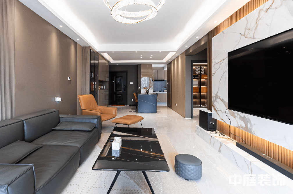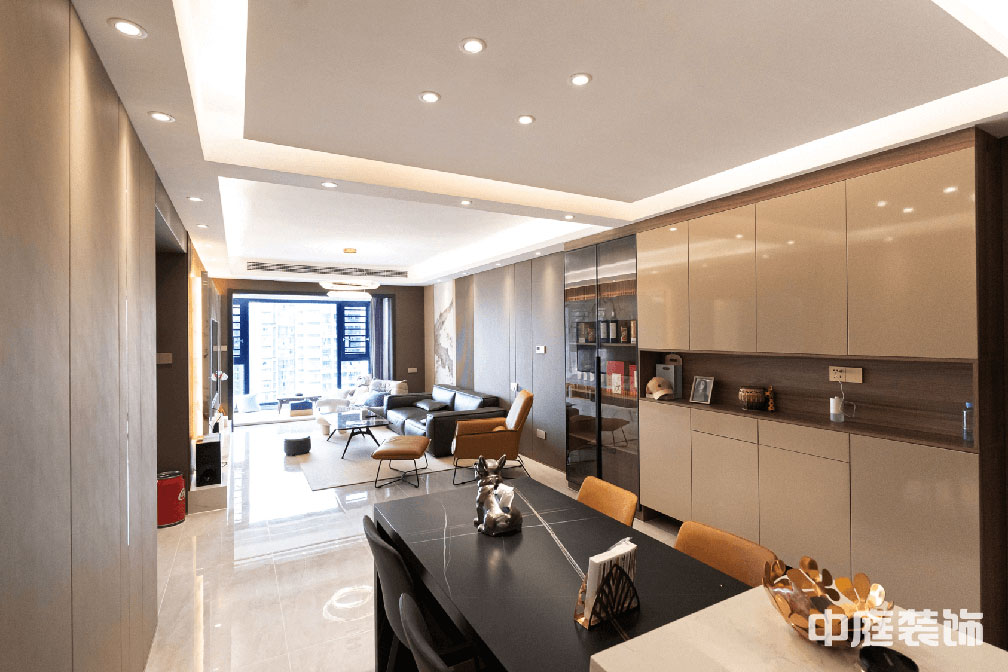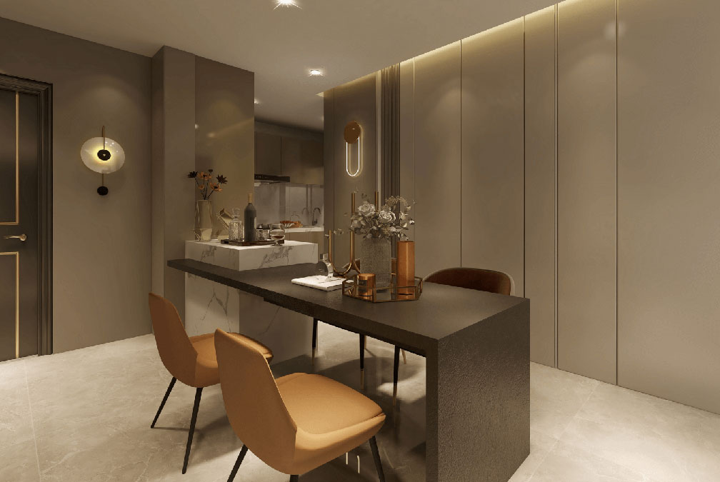 輕奢風(fēng)格的空間以金屬、皮革的中性色調(diào)為主,用色彩的純度傳遞細膩的質(zhì)感。
