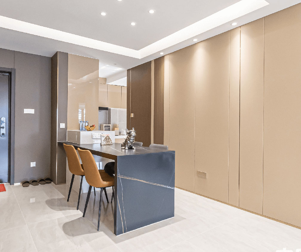 無論是石英石也好、瓷磚也好,還沒有哪種材料,既能達到大理石的美貌,又能實現(xiàn)堅固耐用的功能,直到巖板的出現(xiàn),交織出大氣而端雅的秩序美與層次感,為空間的內(nèi)在精神找到恰到好處的外在表現(xiàn)形式,在創(chuàng)新中演繹生活的格調(diào)。